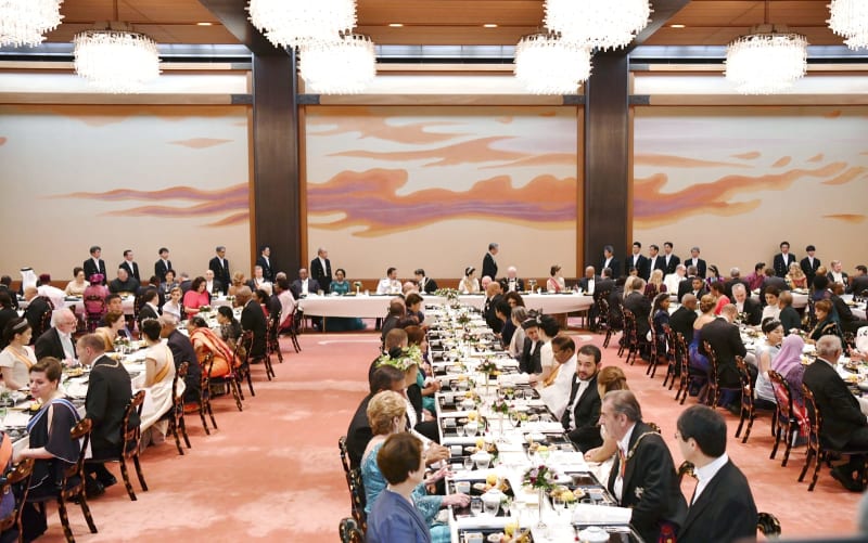 饗宴の儀は皇居・宮殿であり、25日は天皇、皇后両陛下と三権の長や閣僚、各界の代表らが着席して食事。29、31日は国会議員や全国の知事、市町村長、駐日外国大使らが招かれ、立食形式となる。いずれの回も陛下があいさつされる。