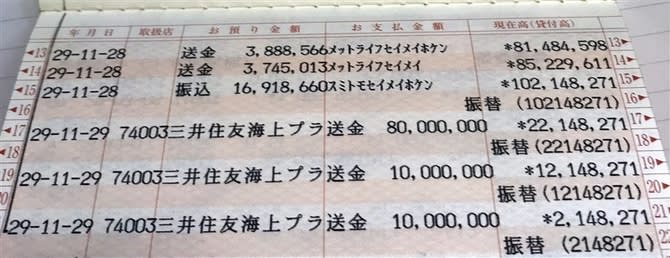 「なんだ、この送金は」。2018年初旬、福岡県の春田邦男さん(70)=仮名=は、県内で1人暮らしする姉(79)の貯金通帳を見て驚いた。17年11月29日に計1億円が三井住友海上プライマリー生命保険に送金されていた。